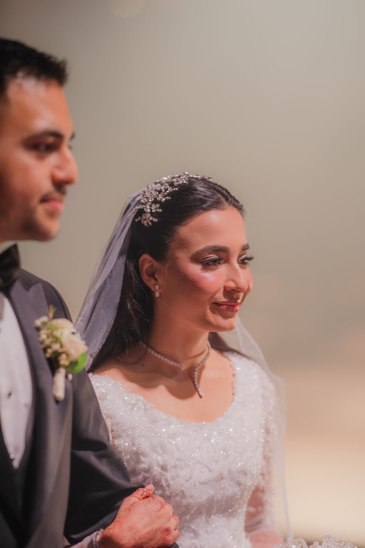 We captured them seated together, the long train of her dress cascading beautifully across the stage like a quiet river. We framed them standing beside each other, faces lit with a steady calm. We watched as Ubaid reached for her hand, and she responded not with a pose, but with the kind of smile that speaks in light. Those photographs became more than images – they became pauses.