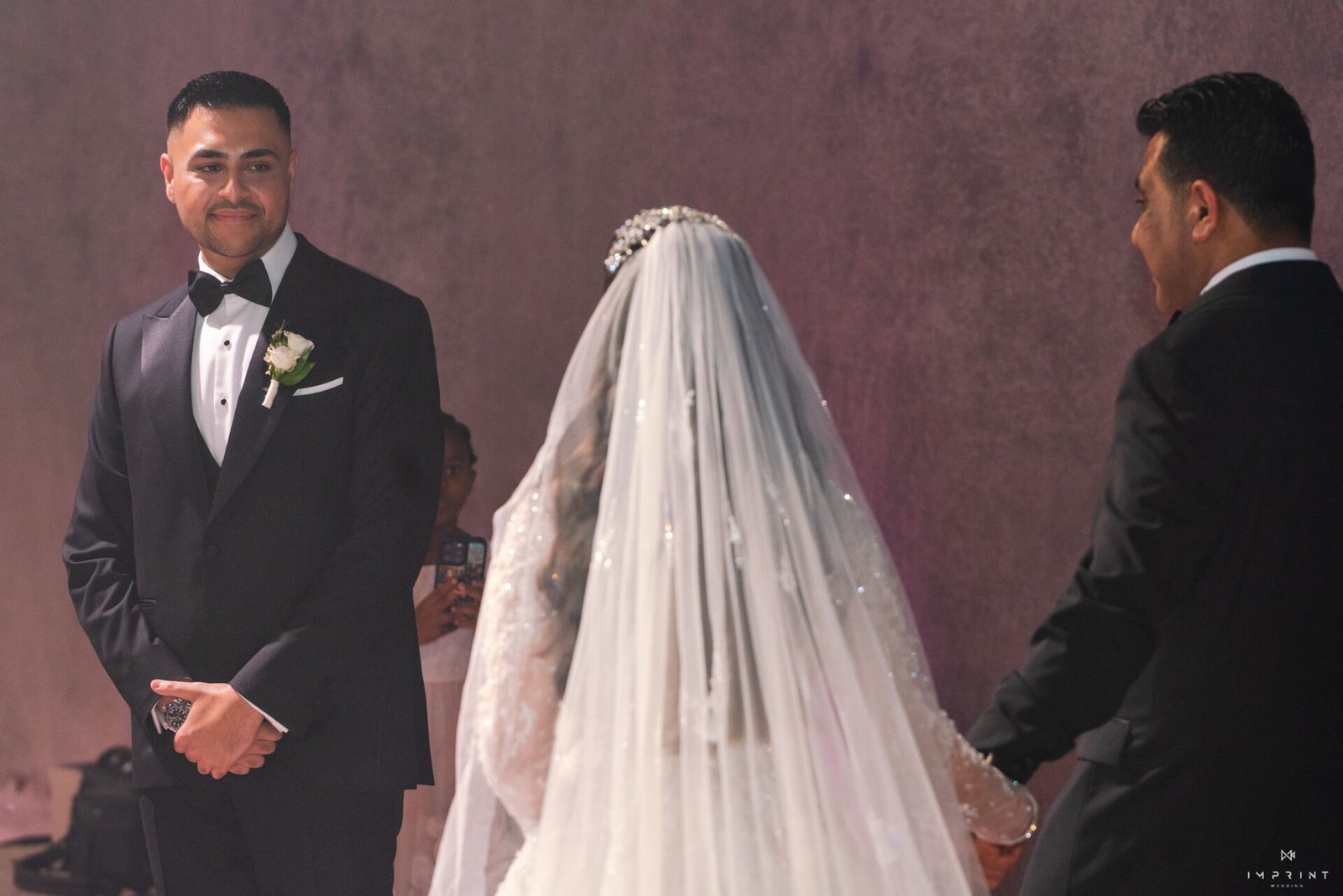 A paragraph written in a book filled with stories – that’s what this evening felt like. The joy of two souls colliding in the immensity of our unknown universe, offering us a brief peek into a moment shaped entirely by love. And within this gentle unfolding, Muslim wedding reception photography became more than documentation, it became a quiet witness to emotion, preserving every subtle glance and soft breath shared between Rimsaa and Ubaid.